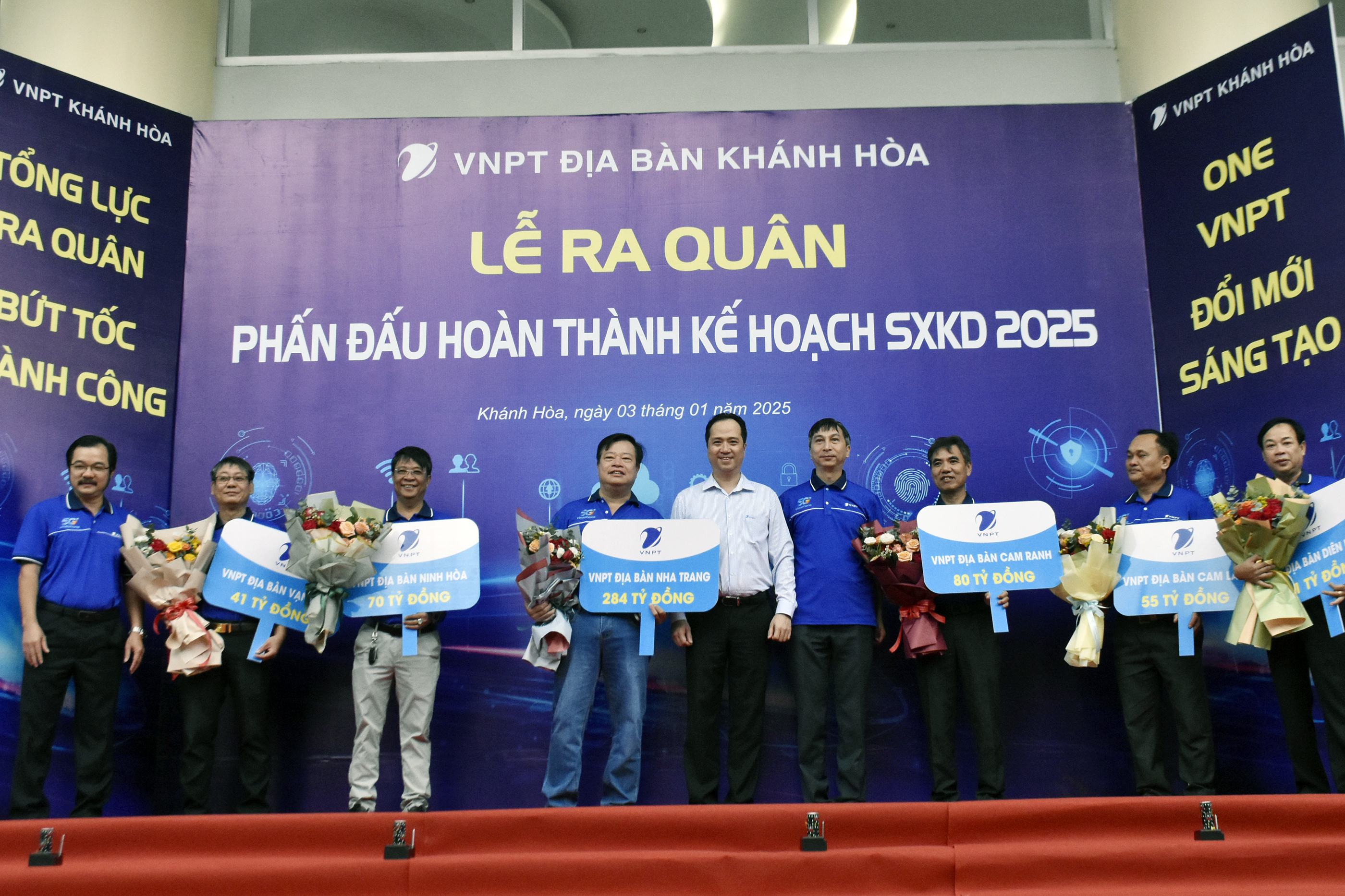 Tại điểm giao dịch 50 Lê Thánh Tôn, Nha Trang, sau chương trình văn nghệ chào mừng năm mới và phát biểu của Ông Nguyễn Minh Trường về việc thực hiện các chỉ tiêu nhiệm vụ và kết quả của địa bàn đạt được trong năm 2024, Lãnh đạo VNPT Địa bàn thực hiện nghi thức giao kế hoạch doanh thu địa bàn năm 2025. Thay mặt các địa bàn nhận kế hoạch doanh thu năm 2025, ông Trần Mạnh Hà, Trưởng địa bàn, Giám đốc Trung tâm Viễn thông Nha Trang xin hứa quyết tâm hoàn thành và hoàn thành vượt mức kế hoạch được giao.