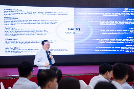 Văn hóa VNPT được khẳng định không chỉ là nền tảng tinh thần mà còn là “chất keo” gắn kết con người, định hướng hành vi và phong cách làm việc trong toàn hệ thống. Các giá trị cốt lõi gắn với 5 chữ vàng: Trung thành – Dũng cảm – Tận tụy – Sáng tạo – Nghĩa tình tiếp tục được nhấn mạnh và diễn giải phù hợp với bối cảnh mới, cùng với vai trò nêu gương của đội ngũ lãnh đạo trong việc thực hành văn hóa doanh nghiệp từ những hành động cụ thể, thiết thực hằng ngày.