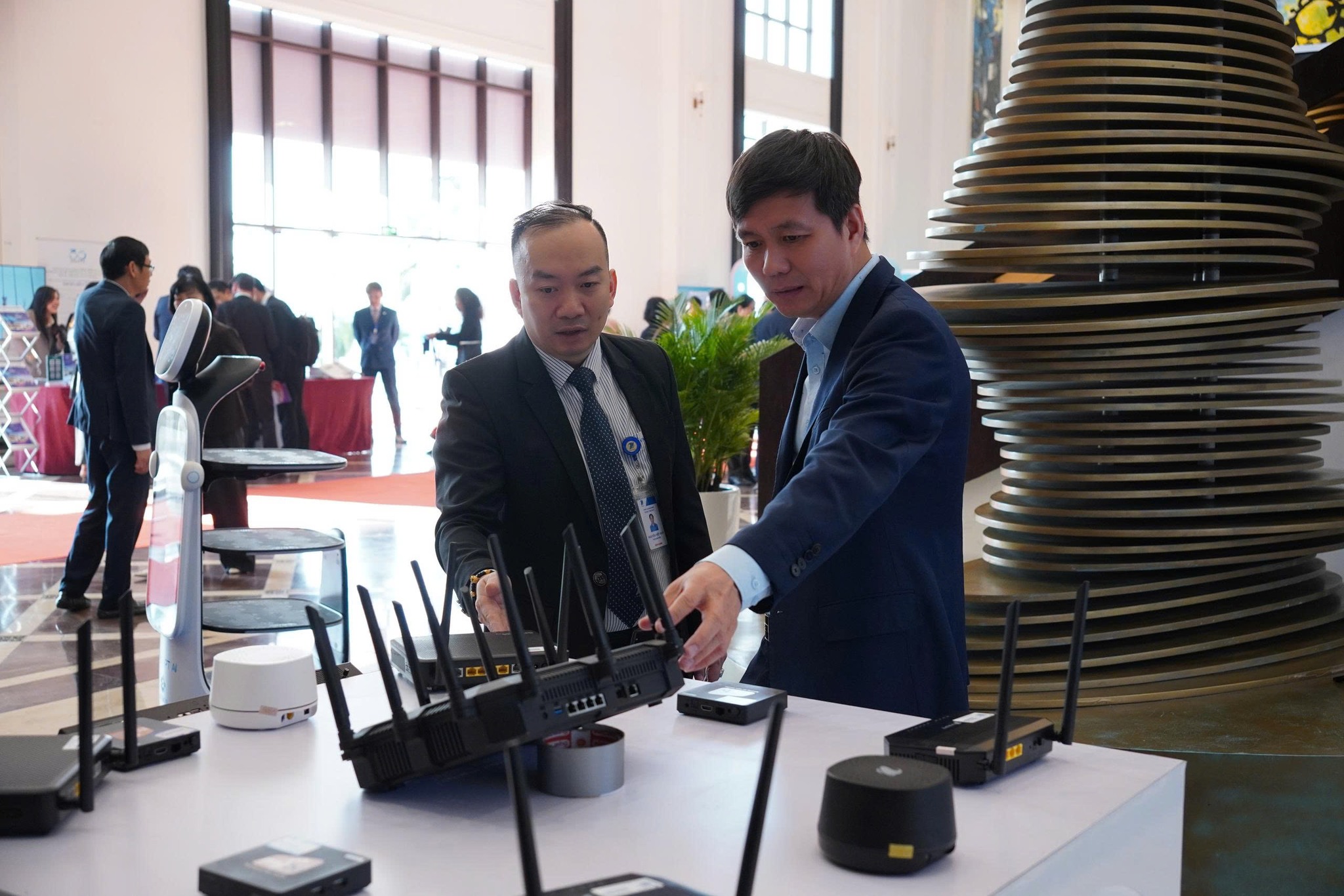 Không gian trưng bày của VNPT nổi bật với loạt giải pháp công nghệ mới nhất như Modem Wifi 7 tốc độ vượt trội, giải pháp nhà thông minh One Home, ứng dụng công nghệ thực tế ảo – thực tế tăng cường (AR/VR) cùng nhiều sản phẩm tiên tiến khác.
