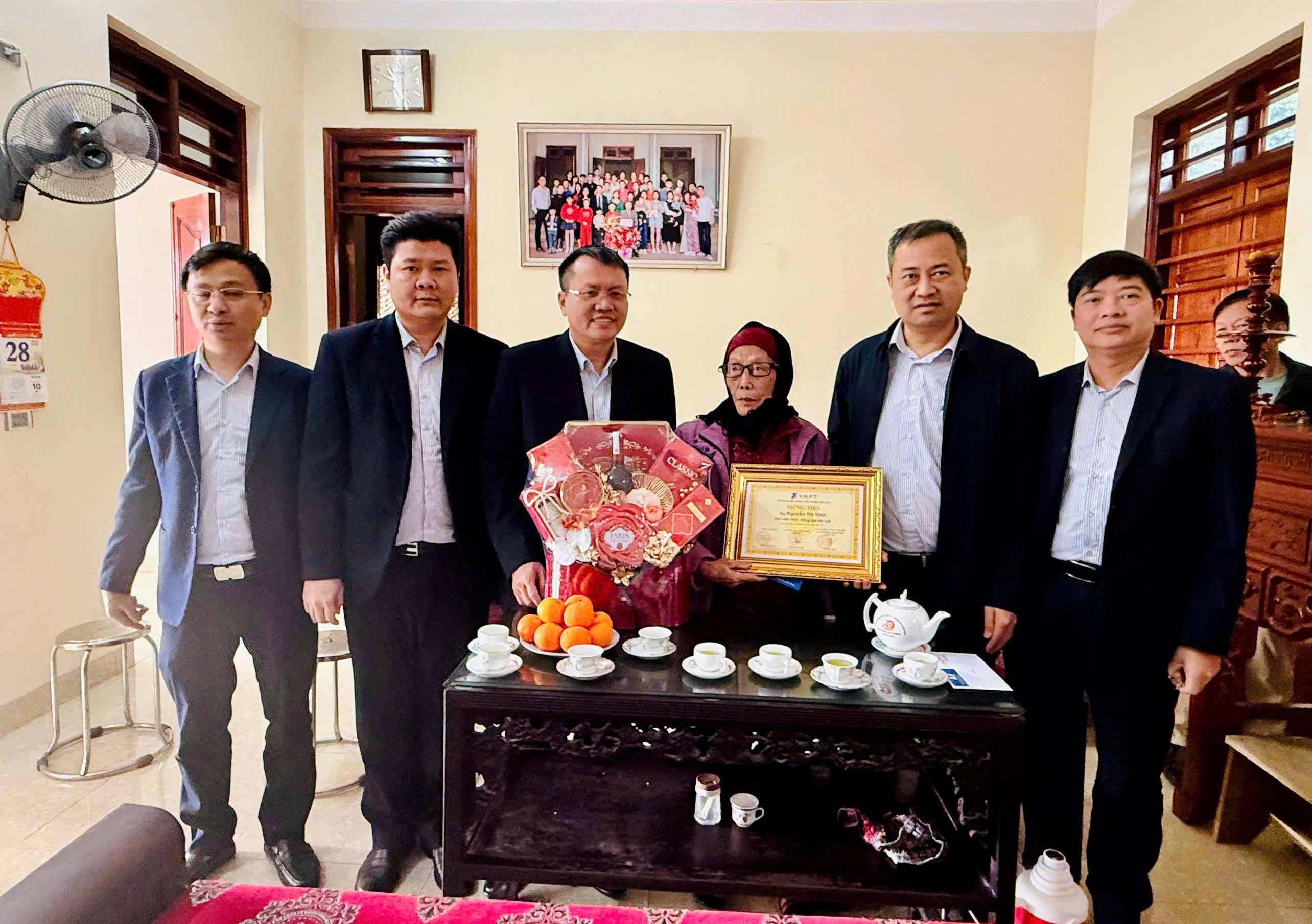 (Đồng chí Lê Hải Lý – Phó Chủ tịch Công đoàn VNPT cùng Đoàn công tác đến thăm và chúc Tết cụ Nguyễn Thị Vĩnh (sinh năm 1923) là thân nhân người lao động)